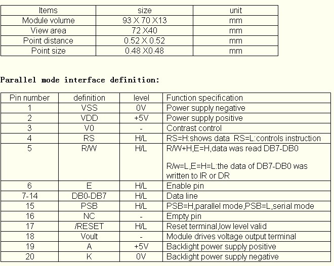 Operating temperature: -20 to 70 degree
