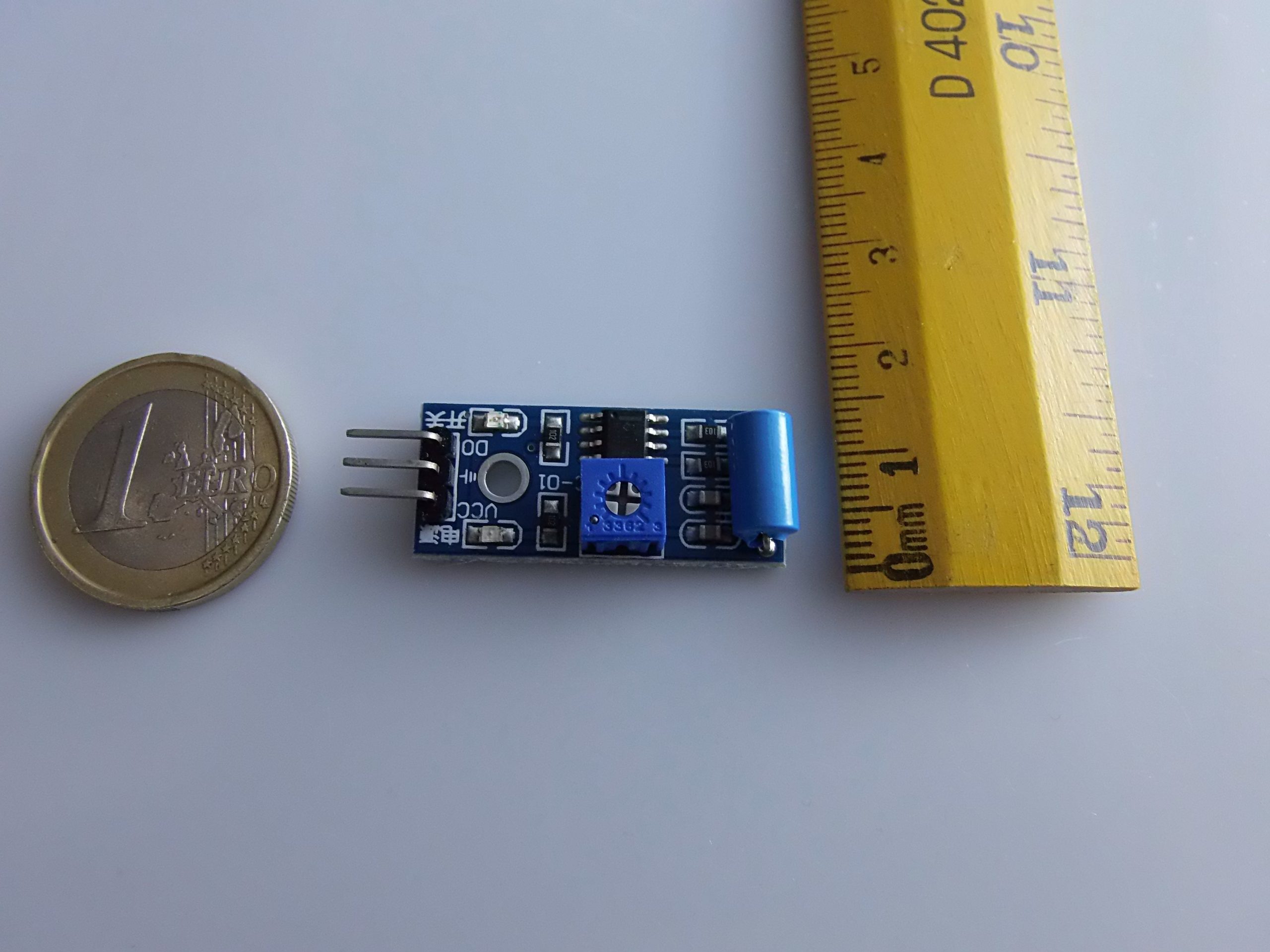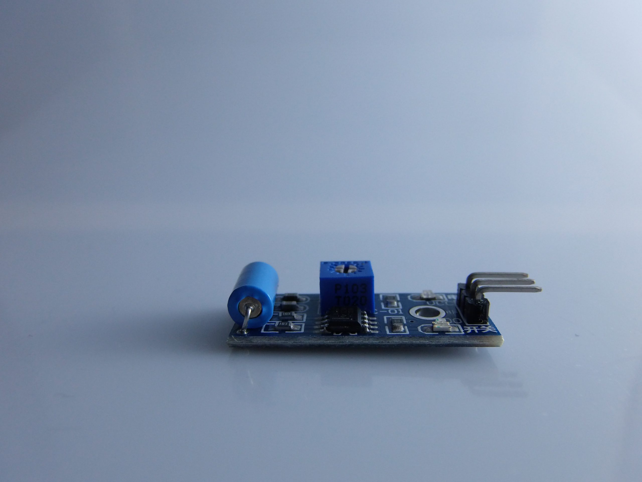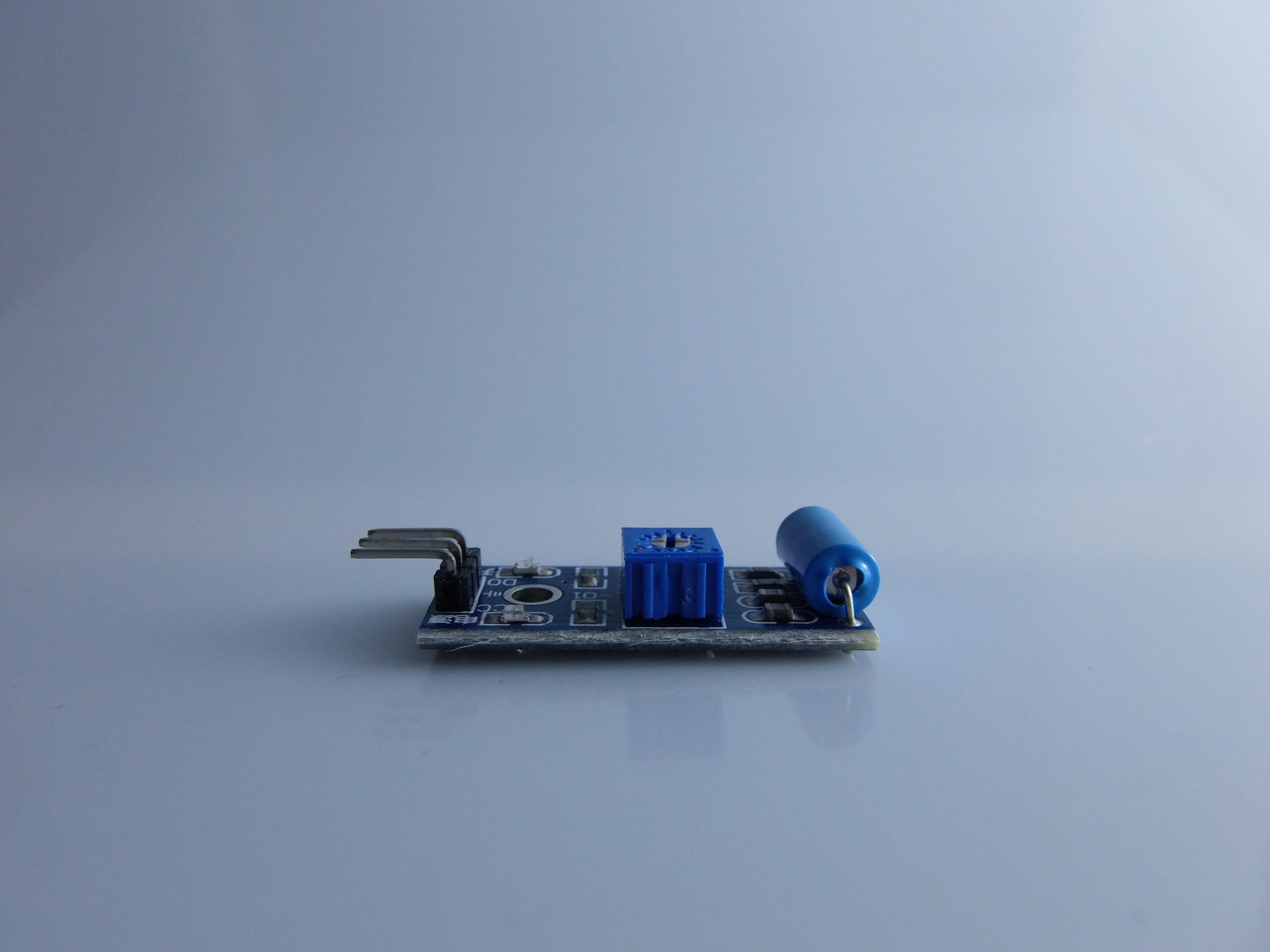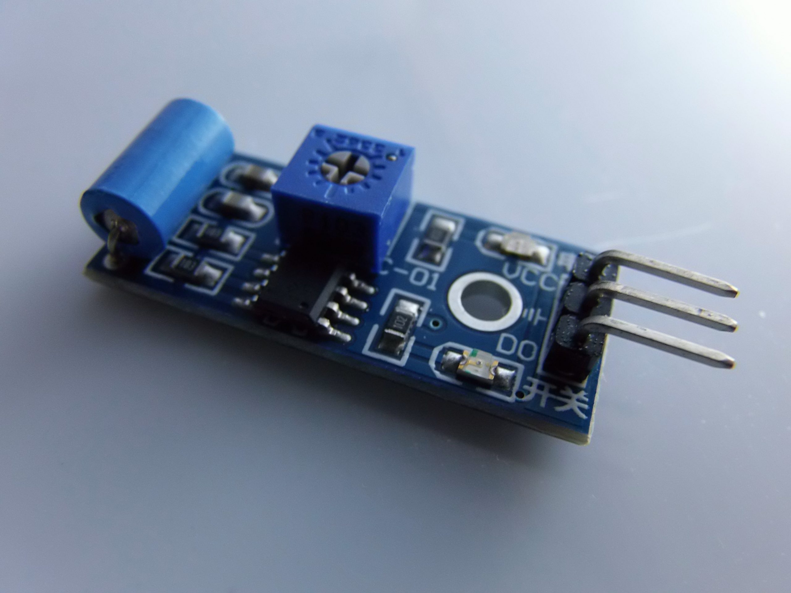 Il trimmer consente di regolare la sensibilità, ovvero quanto il modulo deve essere “scosso” per attivare il segnale di uscita.