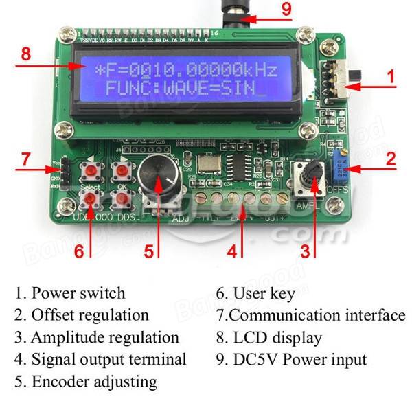 Signal: Can output sine, square, triangle wave and sawtooth