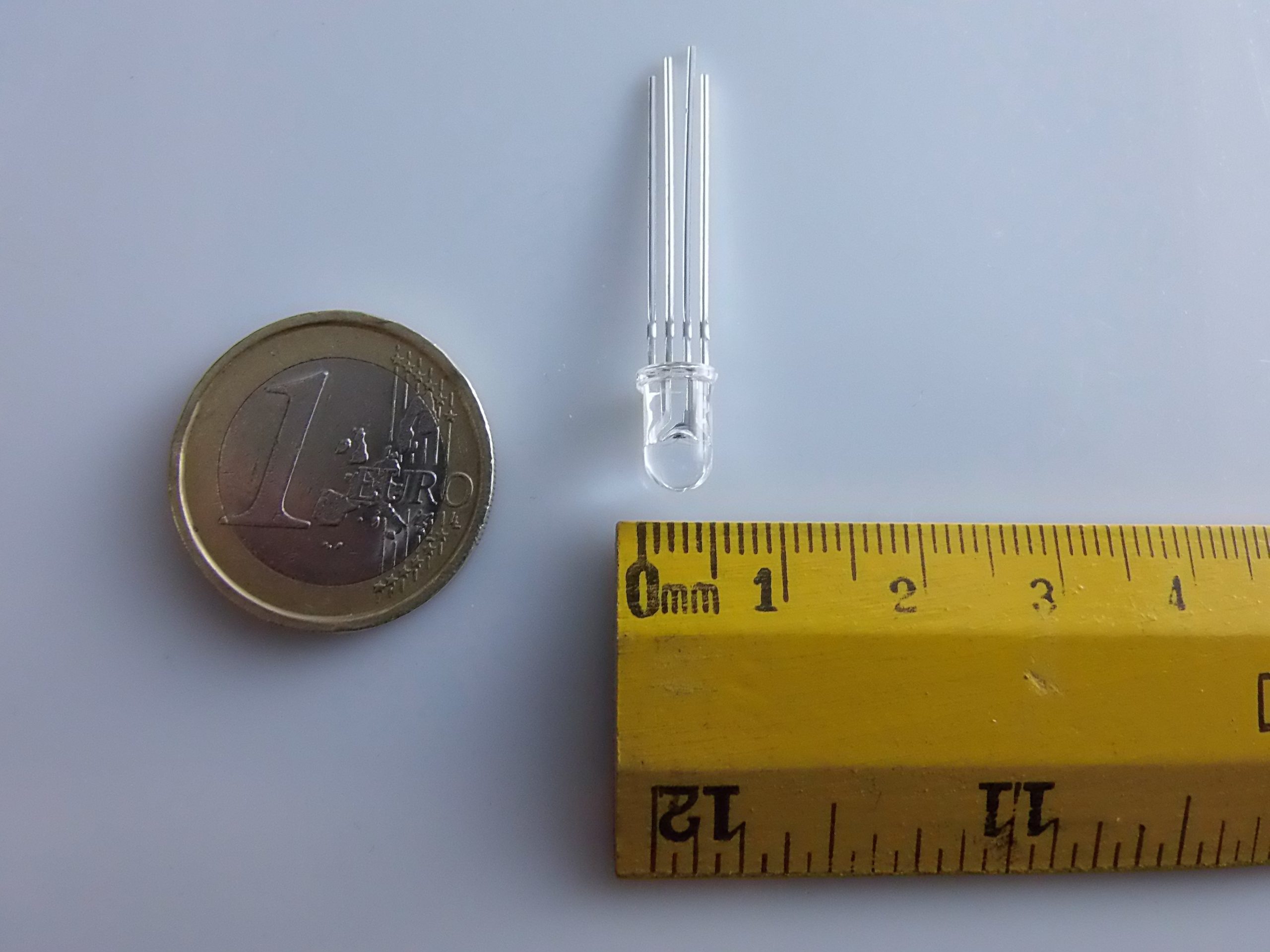 Il pin più lungo (di solito il secondo da sinistra guardando la parte piatta del LED) è l’anodo comune.