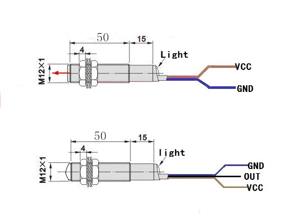 2, induzione: segnale di tensione in uscita che interrompe la luce (differenza di tensione 0,6 V)
