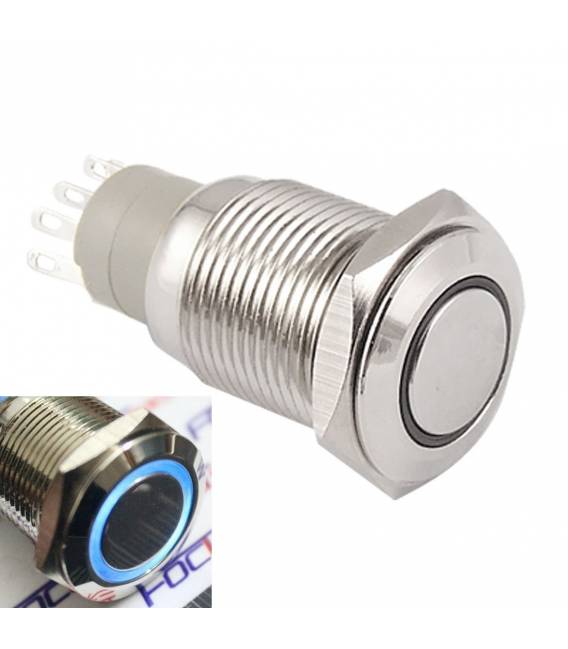 Interruttore ON/OFF a Pulsante Autobloccante LED Blu 12V 16MM in Metallo Pannello