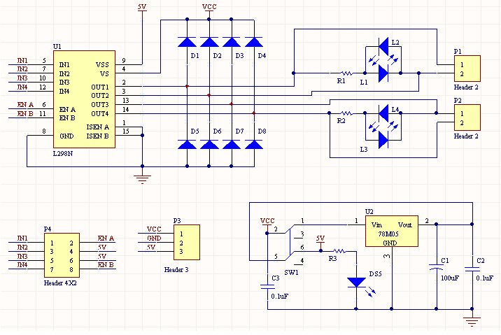 - Controllo indipendente di due motori DC o un motore stepper.