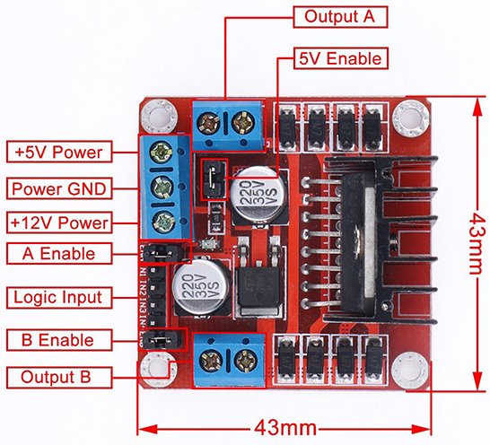 - Jumper 5V ENABLE: se usi alimentazione >7V, puoi lasciare il jumper per ottenere 5V per la logica dal modulo stesso.