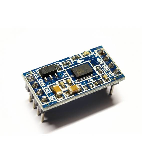 Questo modulo serve a sbloccare il chipset MMA7455, un chip in grado di fornire letture di acclusione a 3 assi. Il chipset dispone di un accelerometro a 3 assi ( 2-8g) e di un regolatore di caduta interno per consentire l’utilizzo di alimentazioni da 5 V e 3,3 V.