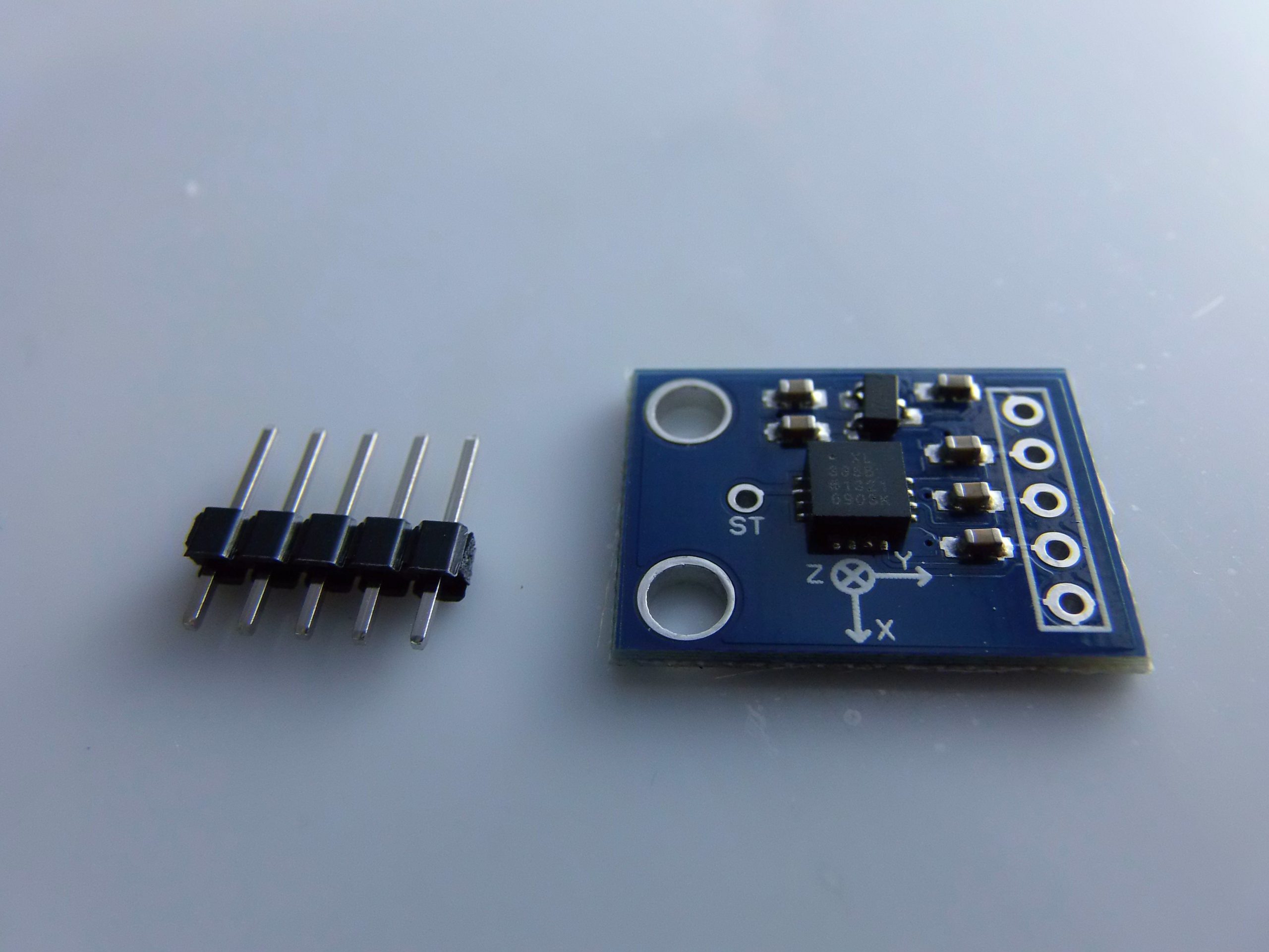 (Vedi i collegamenti precedenti: VCC → 3.3V, GND → GND, X → A0, Y → A1, Z → A2)