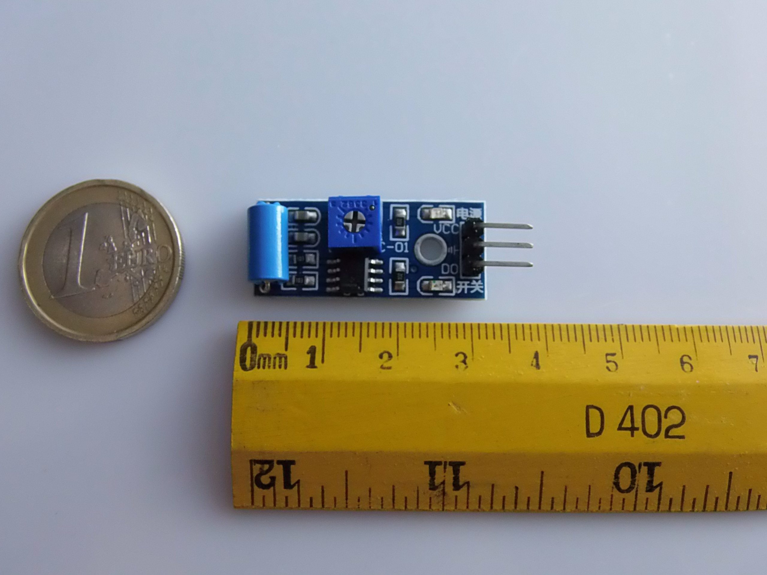 Il trimmer consente di regolare la sensibilità, ovvero quanto il modulo deve essere “scosso” per attivare il segnale di uscita.