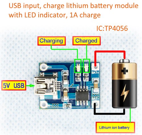 Modulo TP4056 Caricatore Dedicato per Batterie al Litio 1A