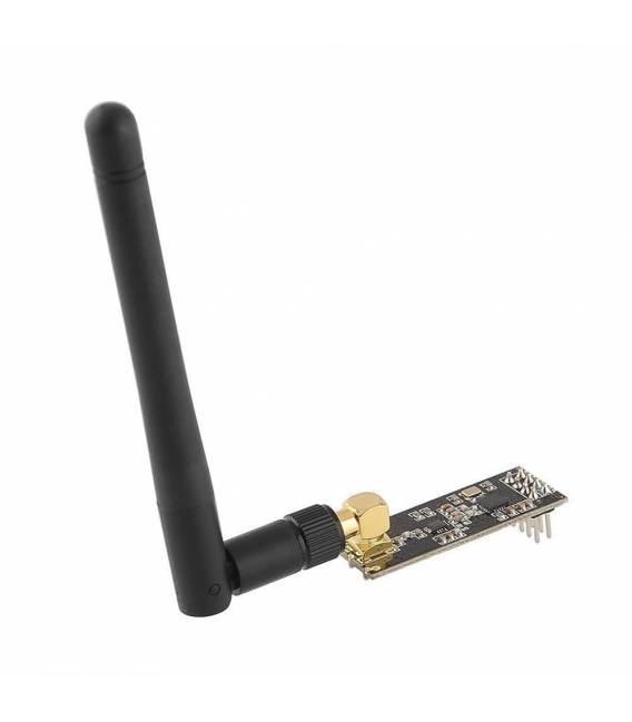 odulo wireless per la trasmissione dei dati a lunga distanza (sino a 1100m) sulla frequenza di 2.4GHz e con una velocit massima di trasmissione sino a 2Mbps. Il modulo garantisce ottime prestazioni a livello di comunicazioni wireless con il protocollo integrato Enhanced ShockBurst , progettato per applicazioni di bassa potenza. La modalit operativa FIFO assicura un flusso regolare di dati tra il modulo e il sistema MCU. L antenna integrata nel PCB consente la trasmissione di potenza sino a 100mW. La comunicazione avviene mediante SPI a 4 conduttori per una velocit sino a 10Mbps, compatibile con vari microprocessori MCU/ARM/PIC/AVR/STM32 e kit di sviluppo come Arduino. Viene largamente utilizzato in ambito industriale, in impianti di sicurezza, per la telemetria e in molte altre applicazioni.