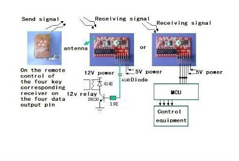 Il modulo costituisce un telecomando completo a quattro vie. Il kit si compone di un portachiavi elettronico che contiene un trasmettitore RF e un modulo ricevente.