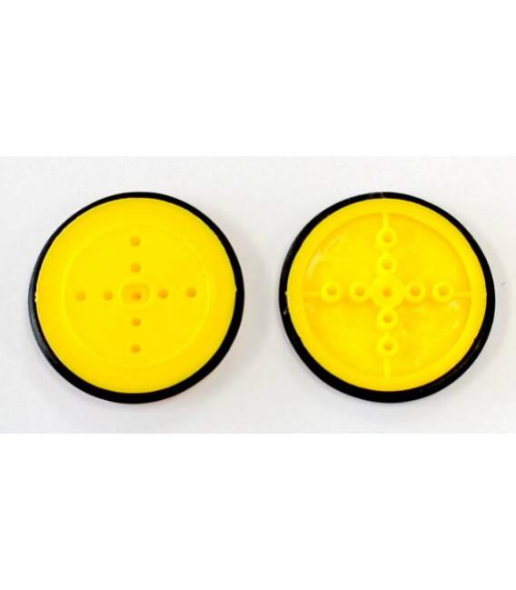 Ruota di ottima fattura e durata, interamente realizzata in materiale plastico, specifica per motori di tipo TT. Adatta per piccoli Robot e modellini RC.