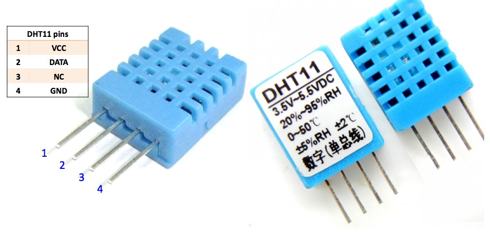 Il DHT11 ha 3 o 4 pin, ma nei moduli standard più comuni trovi: