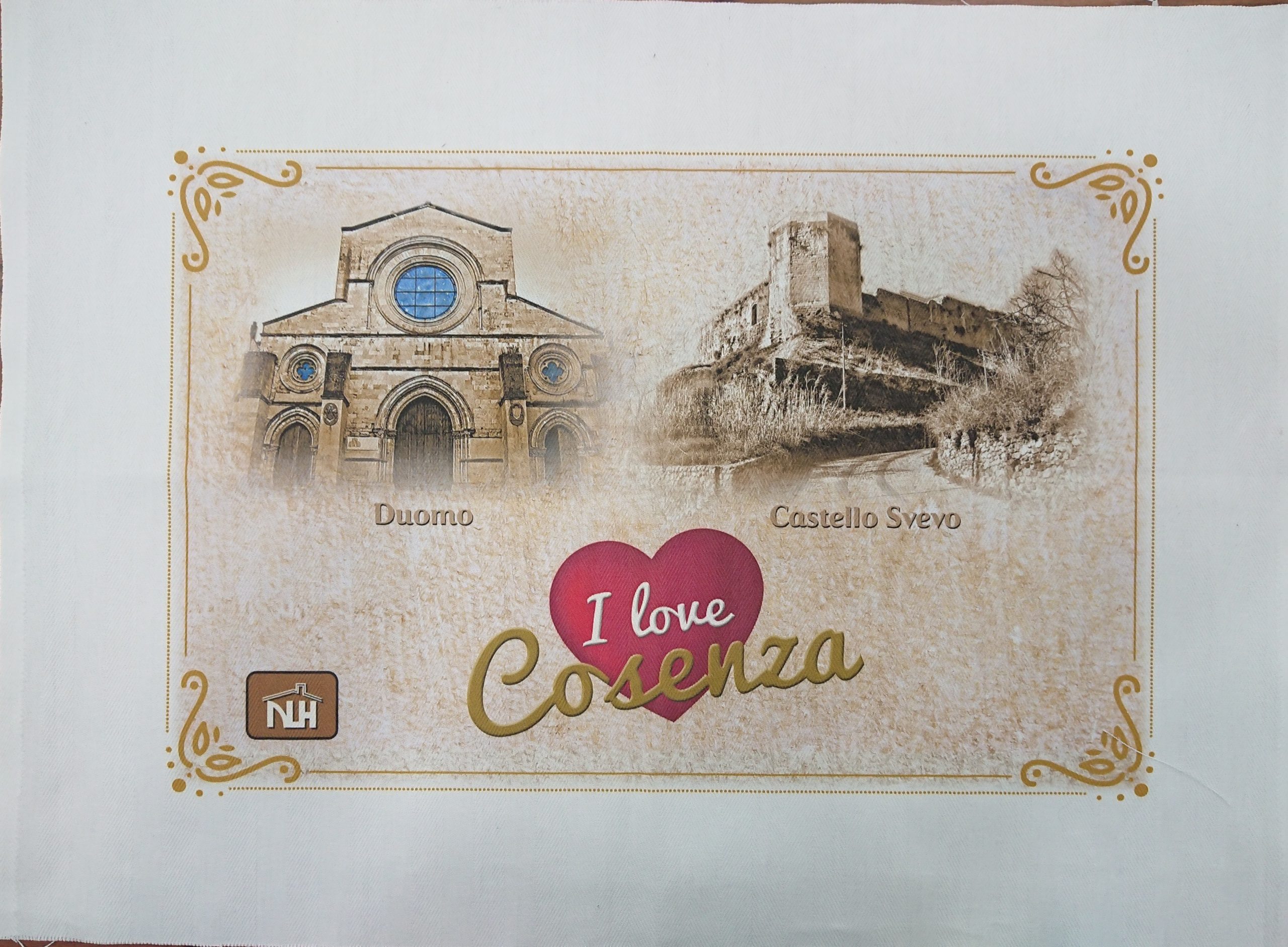 Tovaglietta Souvenir Cosenza su Tessuto Tela Antica MIS. 65×48