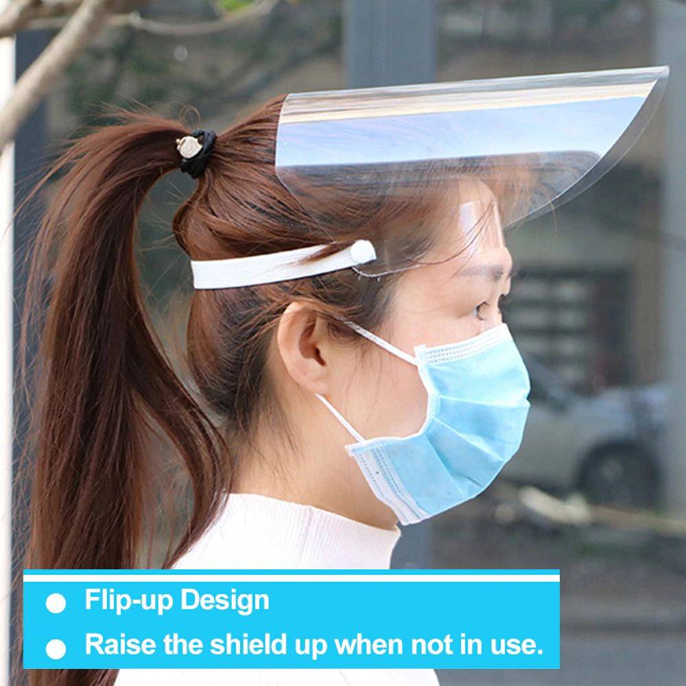Trasparente visiera visiera con visiera trasparente che fornisce senza restrizioni e fascia elastica che permette per un attacco universale. Preparare una per la cucina quotidiana, la pulizia, officina, sia per interni ed esterni.