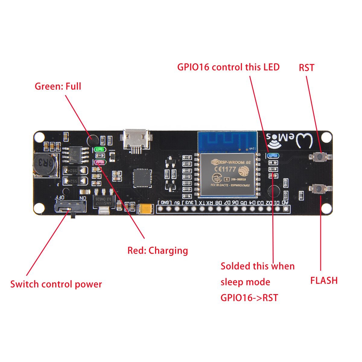 WeMos D1 Mini Modulo WiFi ESP WROOM 02 Scheda madre integrata ESP8266 e 18650 Slot per batteria compatibile con NodeMCU