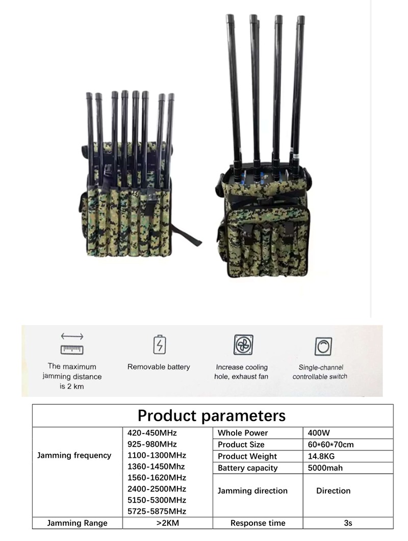 Zaino Mimetico Jammer ANTI – DRONE (8 canali) 400Watt