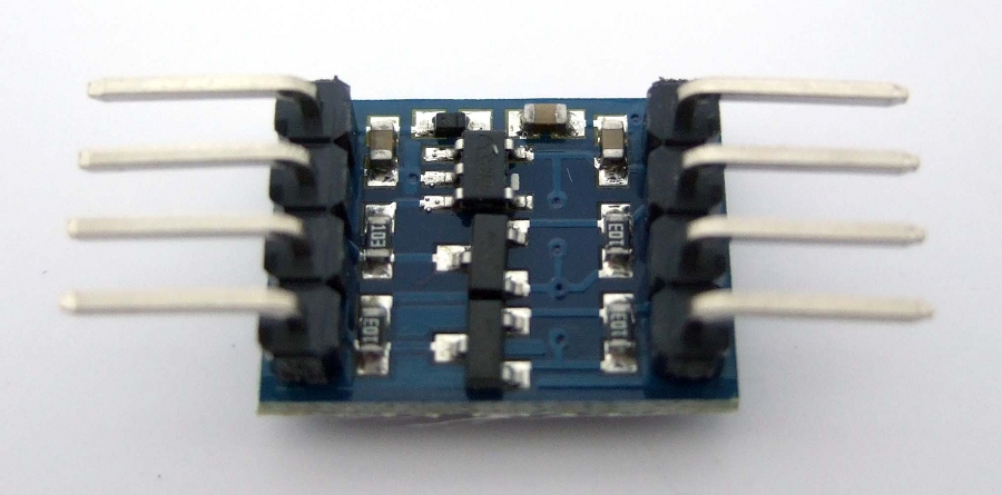 Modulo bidirezionale dalle dimensioni molto compatte che permette di collegare dispositivi che necessitano di alimentazione di 3.3Vcc e utilizzano il protocollo I2C ad Arduino o a sistemi che gestiscono dispositivi a 5Vcc. Integra un regolatore di tensione a 3.3Vcc e si presta egregiamente per la prototipazione rapida su breadboard in quanto le strip-line hanno un passo tra i contatti di 2.54mm.